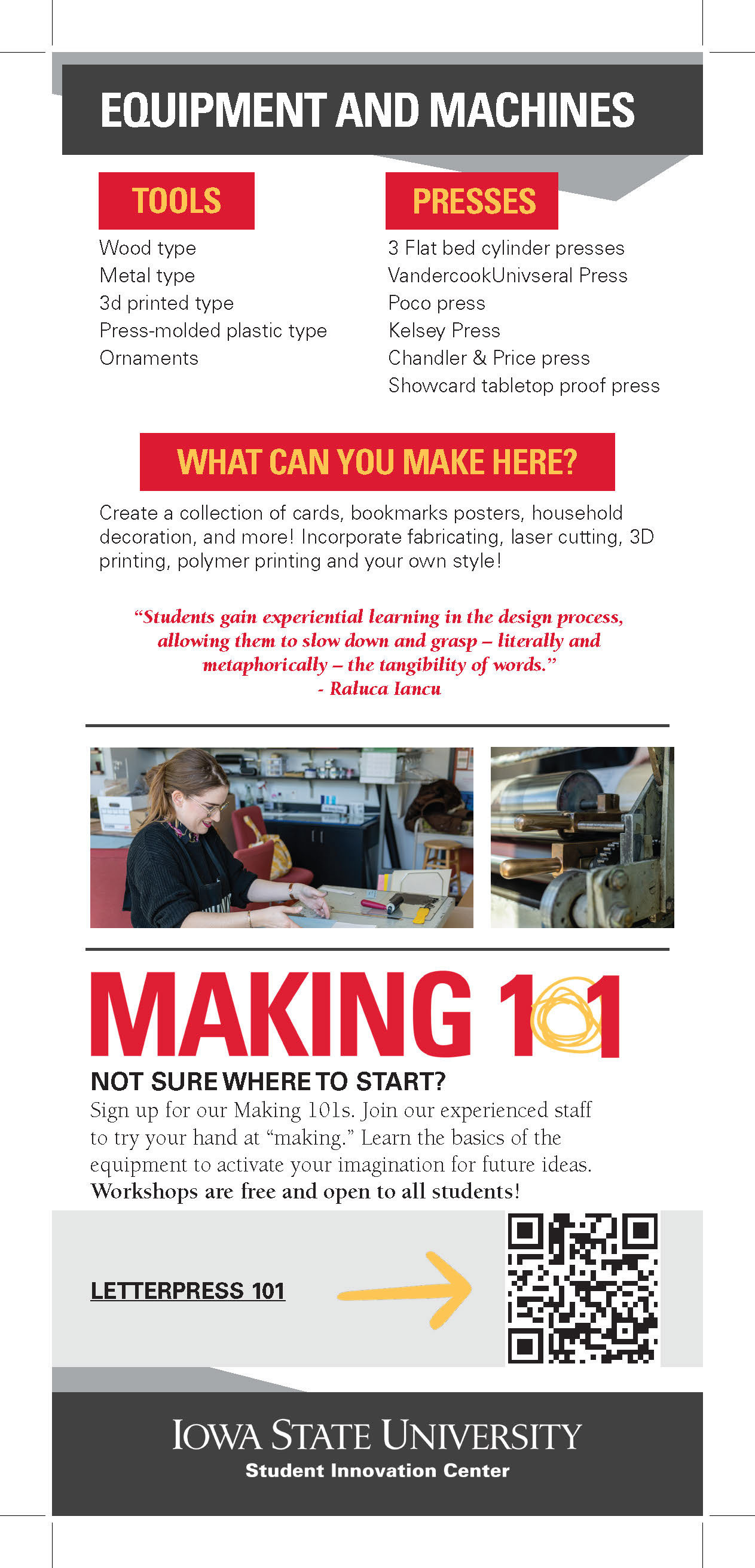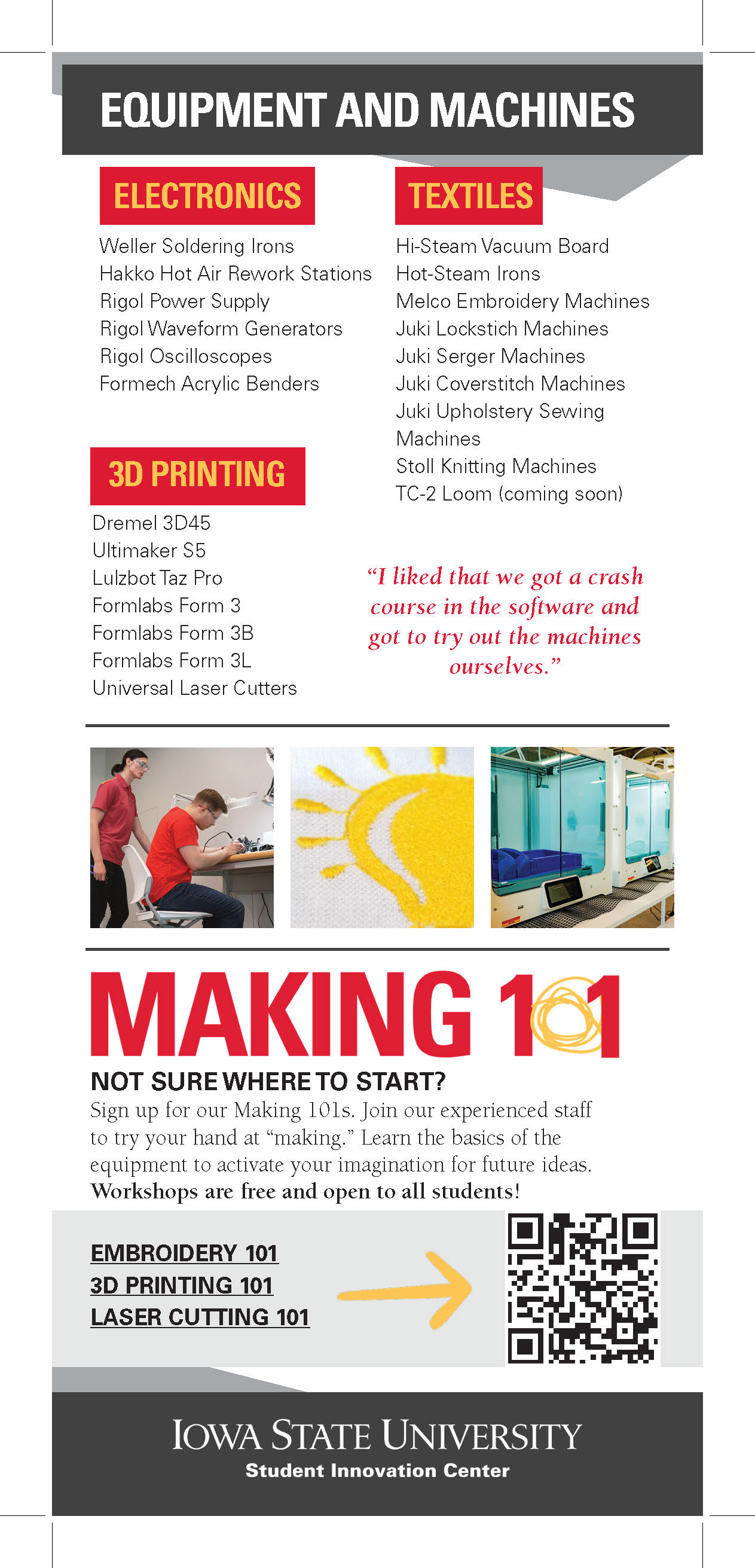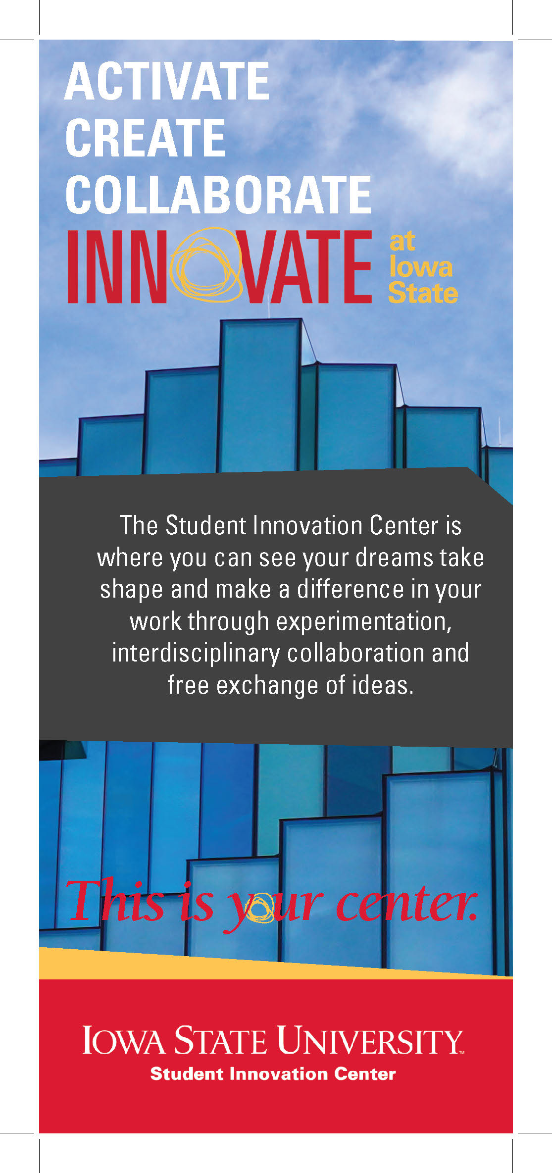 During my last semester as Iowa State University, I was given the opportunity to work alongside the Student Innovation Center to launch advertising, signage and more for the building and the different events/workshops that the SIC hosts.