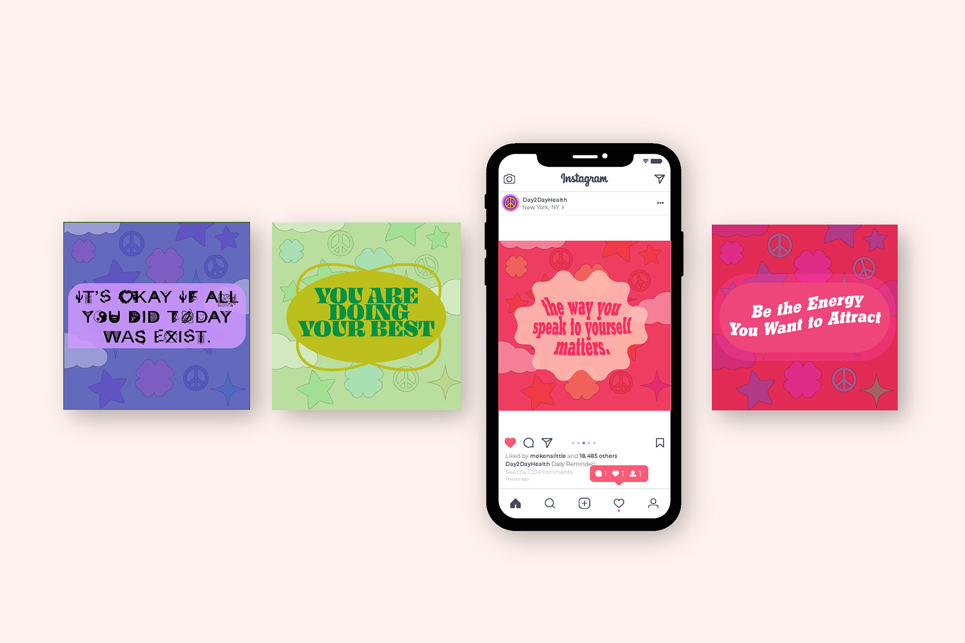 This project was focused on creating a system that would face the challenges of current media. I feel like a lot of young people "doom scroll" on social media and get exhausted from our own expectations and comparisons. I wanted to create a daily exercise that could replace the crutch of social media. The idea is that each day a new activity is unlocked to help boost mental awareness, energy and health. I did include a social media page as another form of mental ease, and a book idea that has 1000 ways to stimulate your brain.
